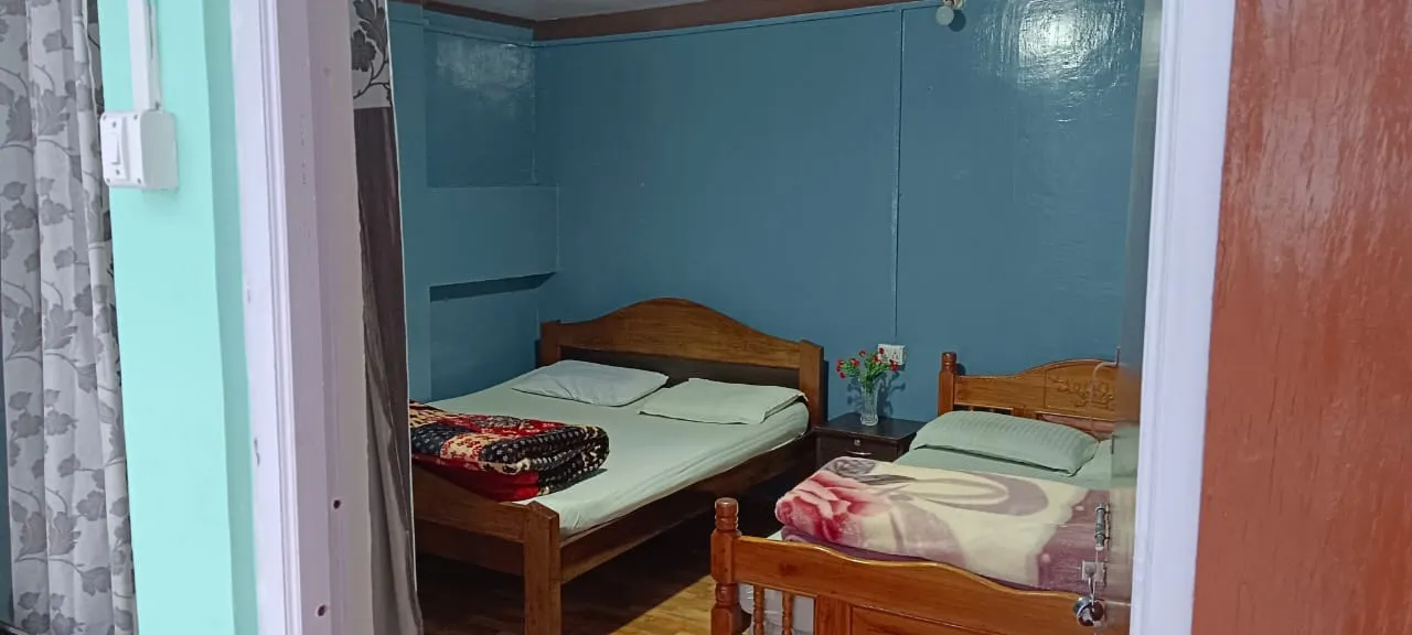The rooms in this homestay are simple yet charming. Wooden walls, clean sheets, soft pillows, warm blankets — every detail is arranged to give you a comfortable hill-stay experience.