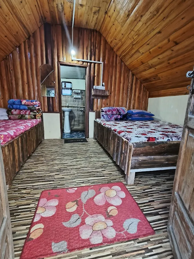 - Deluxe Double Rooms: Perfect for couples or solo travelers. Equipped with comfortable bedding, wooden interiors, TV, attached bathroom, and valley view.
